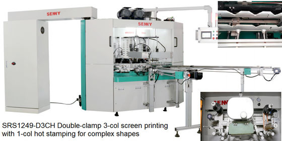 이 기계는 다기능 회전식 다색 스크린 인쇄기이며 핫 포일 스탬핑 장치로 구성할 수 있습니다.타원형/사각형/원추형과 같은 복잡한 모양의 병, 항아리 및 뚜껑에 패턴과 단어를 인쇄하는 데 주로 사용됩니다.쉬운 작동, 정확한 위치 지정, 고도의 자동화 및 빠른 인쇄가 특징입니다.