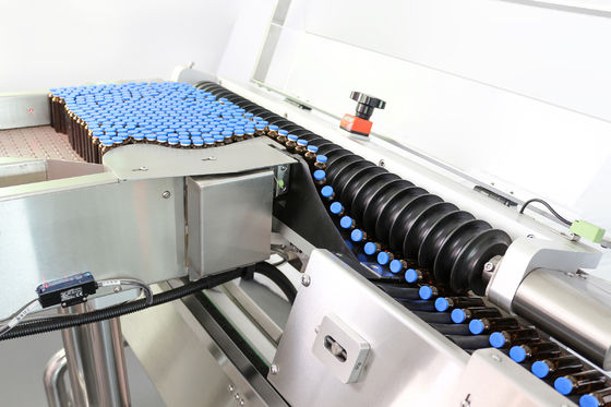 실시간 인쇄 & 라벨링은 자동 급송 장치로 기계화하고, 트레이 슬롯에서 병을 누를 수 있습니다