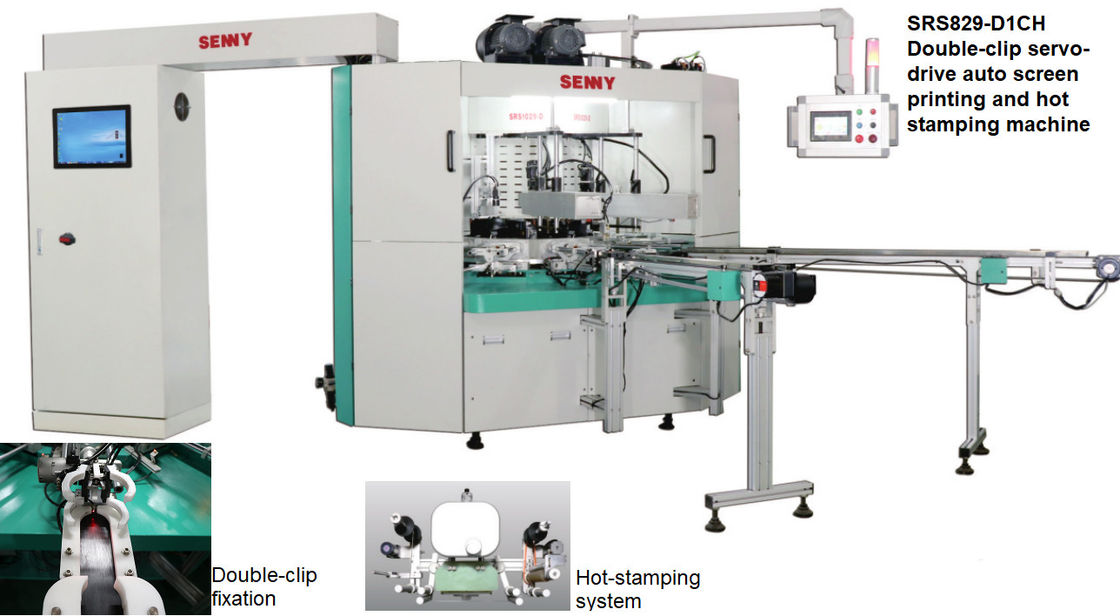 SRS829-D1CH는 초판 인쇄 및 타원형 / 사각형 / 불규칙한 모양의 병, 뚜?? 및 항아리를 초당 45 개까지 인쇄 속도로 뜨거운 스탬핑을 위해 설계되었습니다.